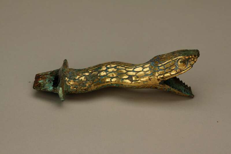 △西汉 鎏金蛇头铜剑柄 云南李家山青铜器博物馆