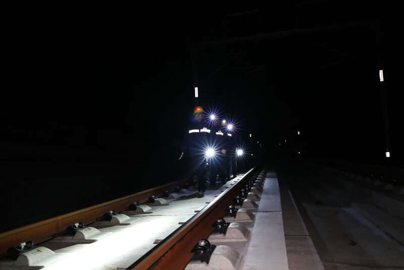 1月14日凌晨,在新乌鞘岭隧道内,线路工使用铁路轨道检查仪检查线路几何尺寸。新华社记者 郎兵兵 摄
