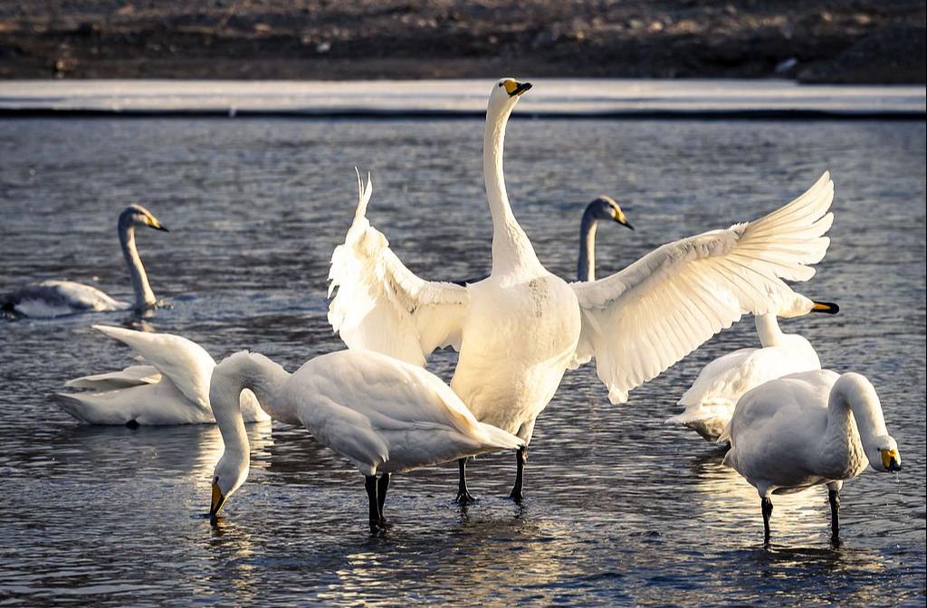 辽宁朝阳:天鹅展翅“昂首挺胸”