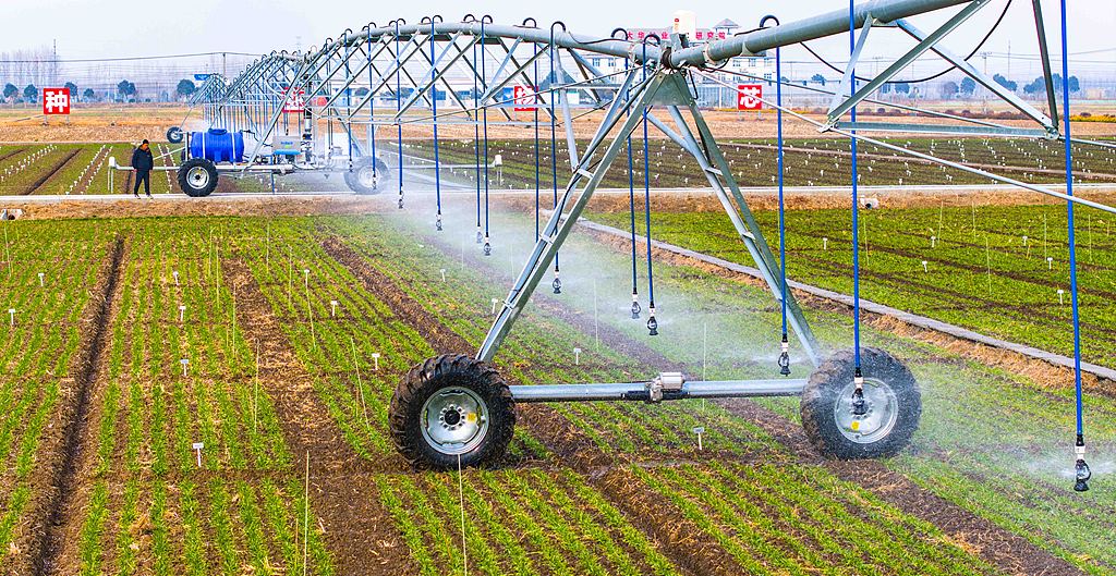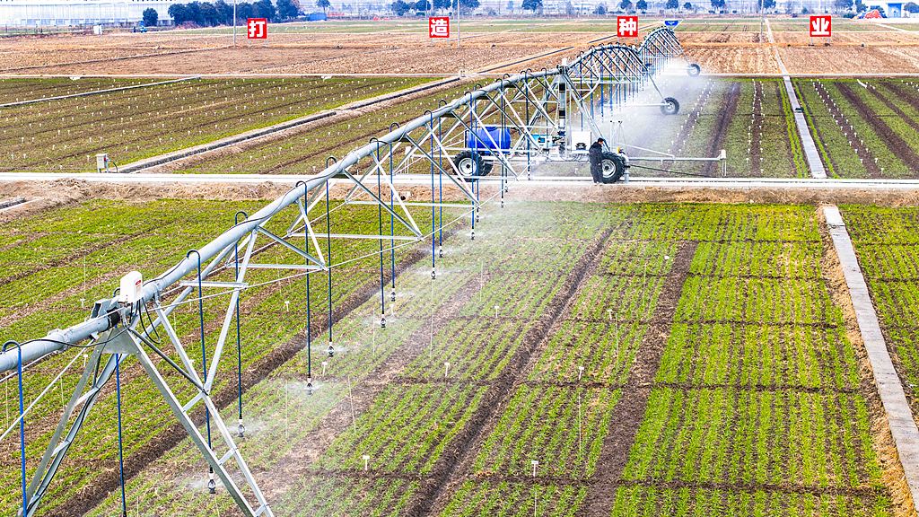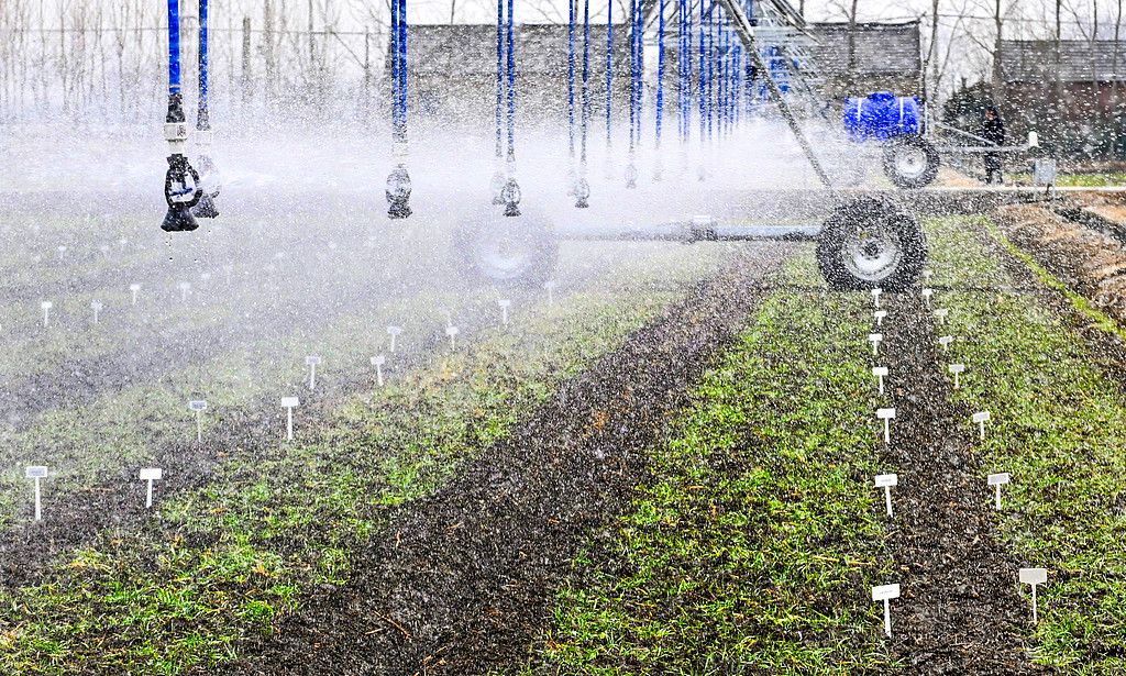 1月14日,江苏农垦白马湖农场工人抢抓农时,根据冬小麦生长苗情、土壤墒情情况,利用平行行走式水肥药一体机进行均匀灌溉,加强小麦分蘖期水分和壮蘖肥供给,让小麦吃上“营养餐”,做好麦苗促弱控旺管理,为夏粮丰收奠定基础。