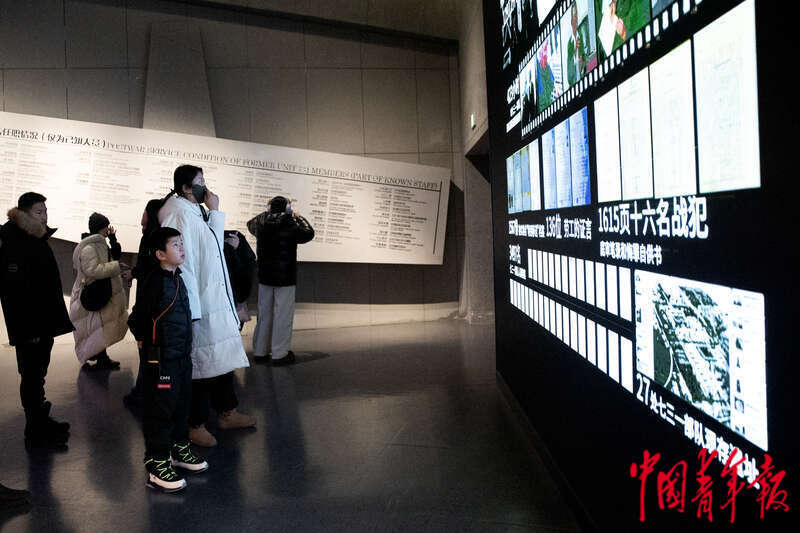 1月14日,黑龙江哈尔滨,众多参观者来到侵华日军第七三一部队罪证陈列馆,接受爱国主义教育。陈列馆展示和记录了侵华日军第七三一部队在战争期间所犯下的细菌战、人体实验等罪行,包括日本细菌战军事战略、特别移送、毁证与逃脱等历史照片、大量陈列罪证实物和口述史料。中青报·中青网记者 程璨/摄