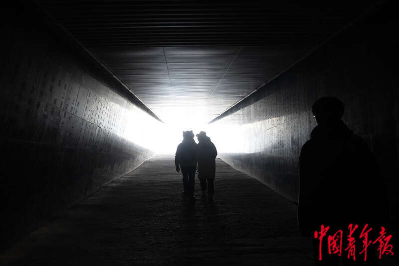 1月14日,黑龙江哈尔滨,参观者走出侵华日军第七三一部队罪证陈列馆。“别回头,向前走,出口有光,有人间烟火,有国泰民安;别忘记来时路,有民族苦难,有国恨家仇。”这是侵华日军第七三一部队罪证陈列馆的工作人员告别参观者时常讲的一句话。中青报·中青网记者 程璨/摄