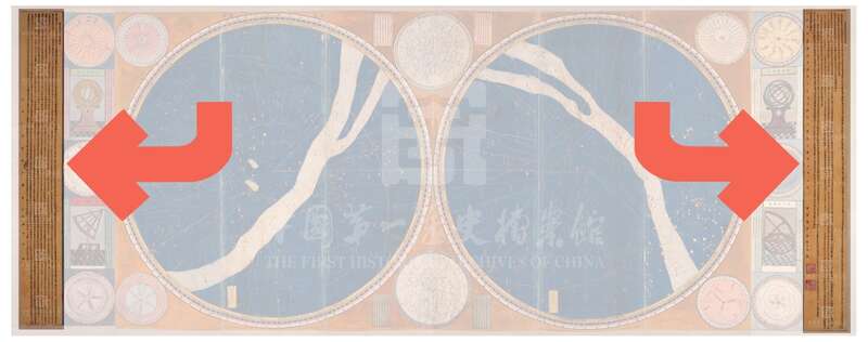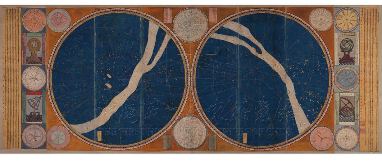 △箭头所指分别为徐光启撰写的《赤道南北两总星图叙》和汤若望署名的《赤道南北两总星图说》。