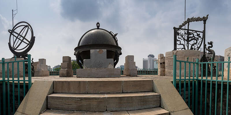△左为《赤道南北两总星图》中的纪限仪图,右为北京古观象台的纪限仪。