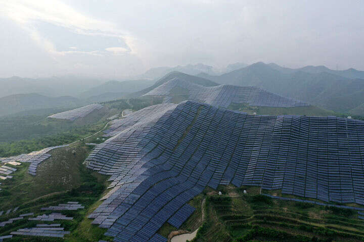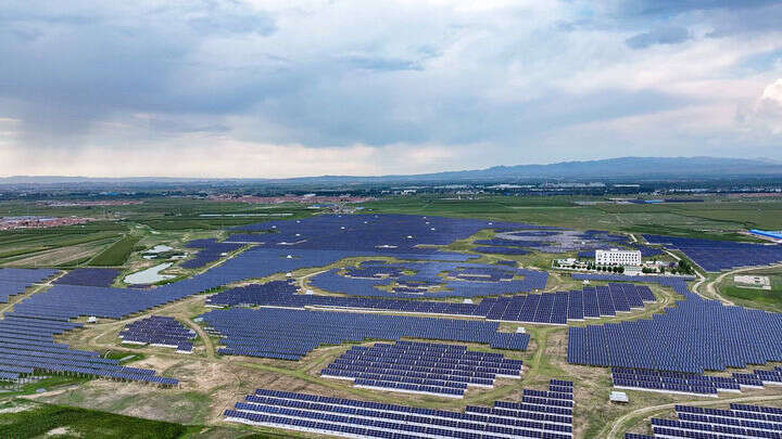 隆冬时节,晋北大地寒风凛冽,在大同市云州区土井村的盐碱地上,由17万块黑白二色光伏板搭建而成、外形酷似熊猫的“熊猫电站”迎来发电高峰。