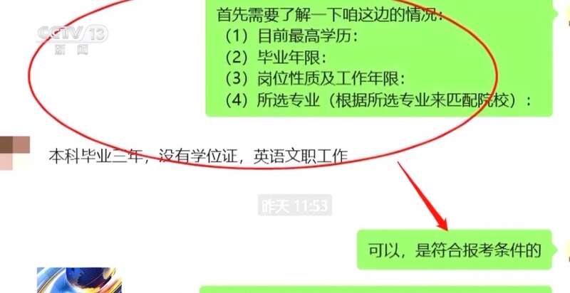 王女士搜索发现,网络上有不少关于在职研究生的广告信息。留下联系方式后不久,王女士就接到了来自某教育咨询机构工作人员的私信并添加了微信。随后,工作人员发来了所谓的提升学历的方法。