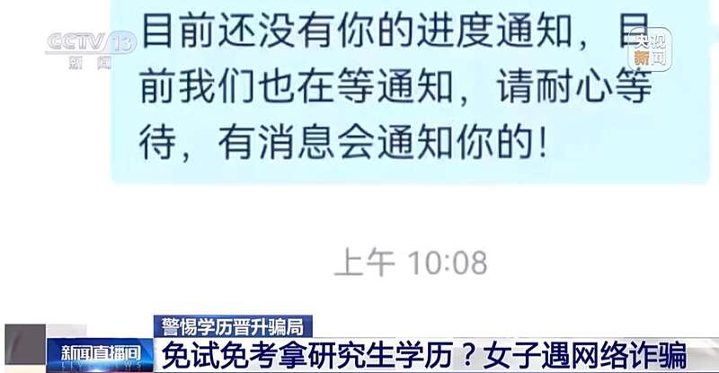 被害人 王女士:他当时是说他们可以走关系什么的,不用参加考试就可以直接让你入学,甚至还可以包办你后面的期末考试、毕业论文、论文答辩什么的,就等于是不需要耗费太多精力去学习。