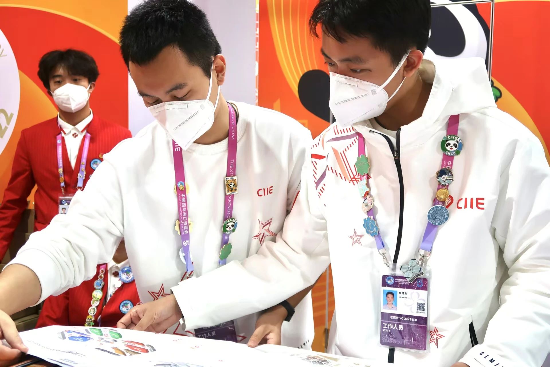 第一段是作为第五届进博会的志愿者,卓靖东负责咨询岗位。在疫情防控的特殊时期,卓靖东不仅要应对封闭管理的严格要求,还要面对语言沟通的障碍、问题的复杂多变以及不时发生的突发状况。尽管每天的工作都充满挑战,但游客们一个满意的笑容,一句简单的“谢谢”,都让他觉得一切努力都是值得的。