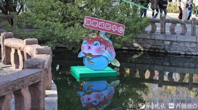 1月16日,据齐鲁晚报报道,一个印有“锦鲤减肥中心”的指示牌被放置在趵突泉景区海豹池内。除了富有网感标语,其设计也比较别出心裁,被塑造成卡通锦鲤的模样,活泼俏皮,极具网感。