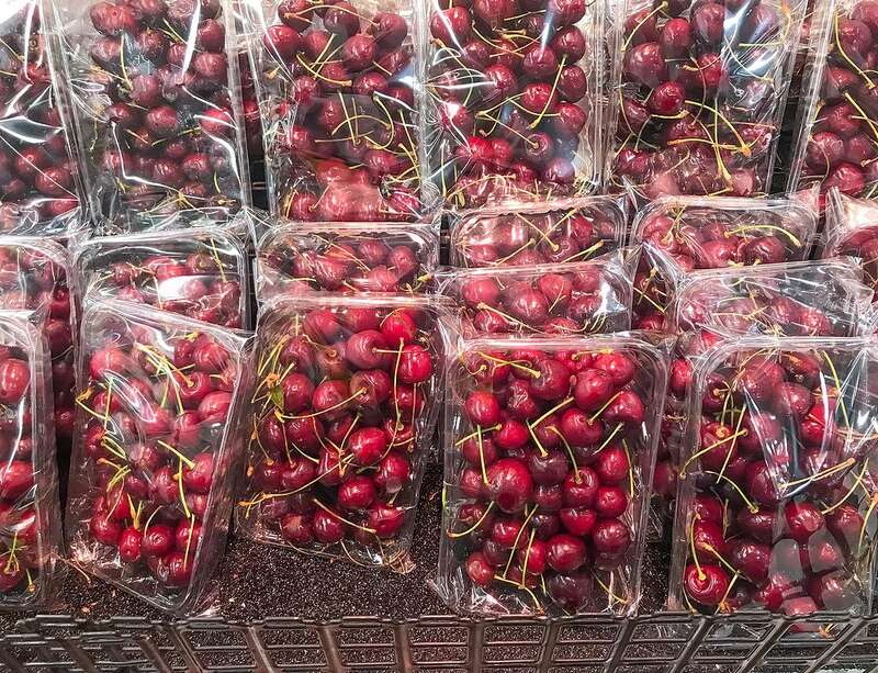 最后,将车厘子封装在0.04~0.06mm厚的聚乙烯袋中进行封口,海运全程冷链来到中国。