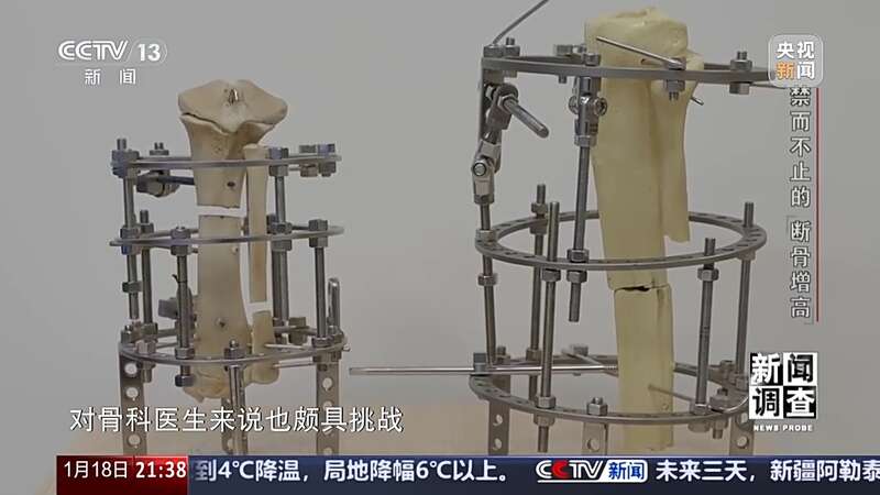 北京积水潭医院足踝外科副主任 杜辉:这个学科的一个本质,从开始到现在,核心的哲学理念是组织牵拉再生。所谓的组织牵拉再生,就是在一定的应力刺激下,持续缓慢的牵拉下,它的人体的组织能再生。它不光是骨延长,实际上是包括骨也在内的这个骨膜、血管、神经、肌肉、皮肤都会随着你的牵拉变长,所以真正应该叫肢体延长。