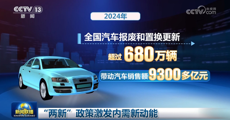 2024年,我国家用电器和音像器材类商品零售额同比增长12.3%,首次突破万亿元大关;全国汽车报废和置换更新超过680万辆,带动汽车销售额9300多亿元,进一步激发消费活力。