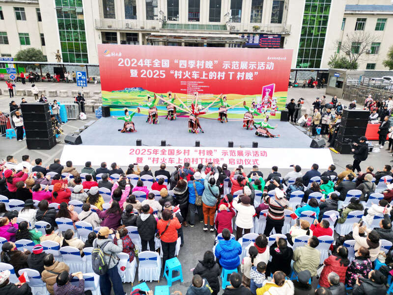 新鲜的农产品、喜庆的车厢、特色的民族歌舞、精美的非遗展示……1月18日,2025年全国乡村“村晚”示范展示活动暨“村火车上的村T村晚”启动仪式,在贵阳开往玉屏的5640次“慢火车”上举行。