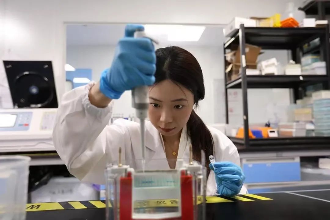 吴雨桐在实验室里对海洋生物药用成分进行药效分析