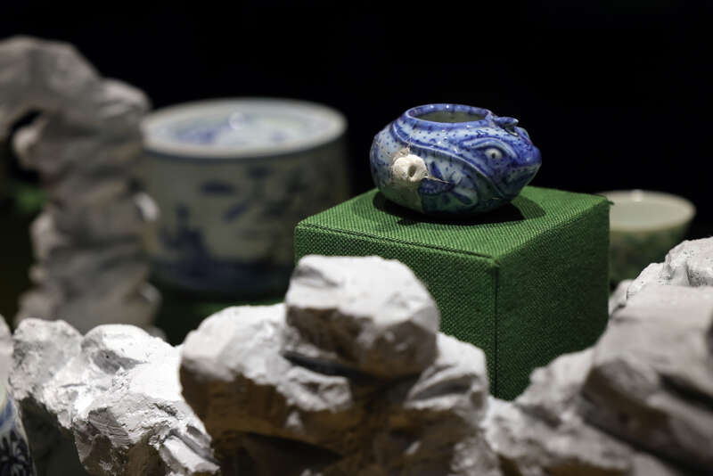 展厅内还设置了触摸御瓷的体验环节,为观众提供亲手感受明代御窑瓷器的难得机会。触摸的瓷片来自明代正统年间未烧制成的青花龙纹大缸,距今已有约580年的历史。