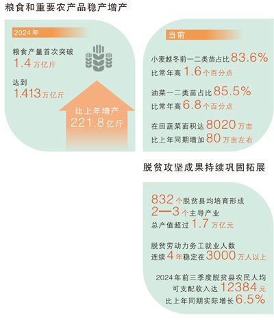 2024年,我国粮食和重要农产品实现稳产增产。