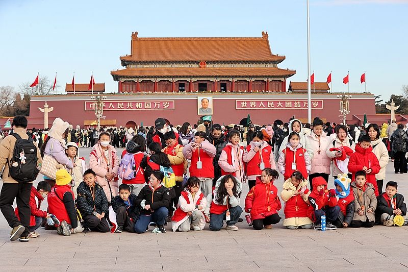 北京天安门广场游客如织 迎来寒假客流高峰