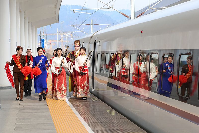 湖北襄阳:文艺志愿者列车献艺 非遗表演温暖返乡路