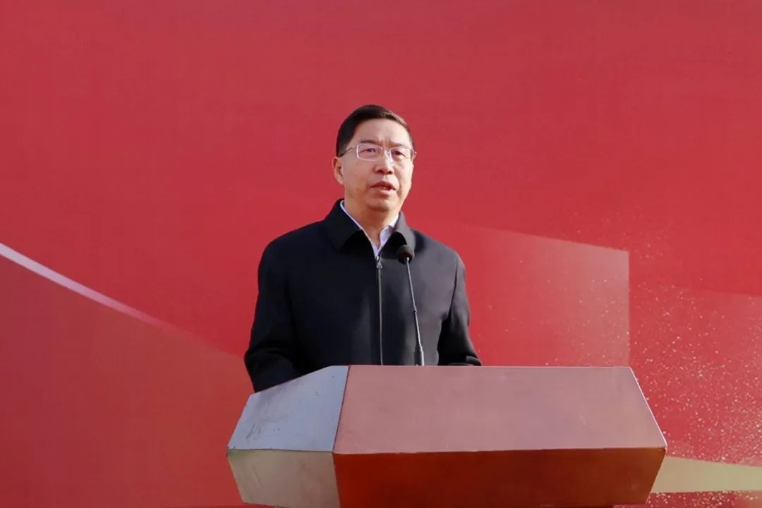 赵建军宣布新财经科技楼项目正式开工,与会领导嘉宾共同为新财经科技楼项目培土奠基。