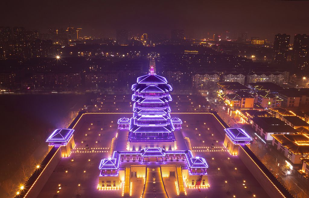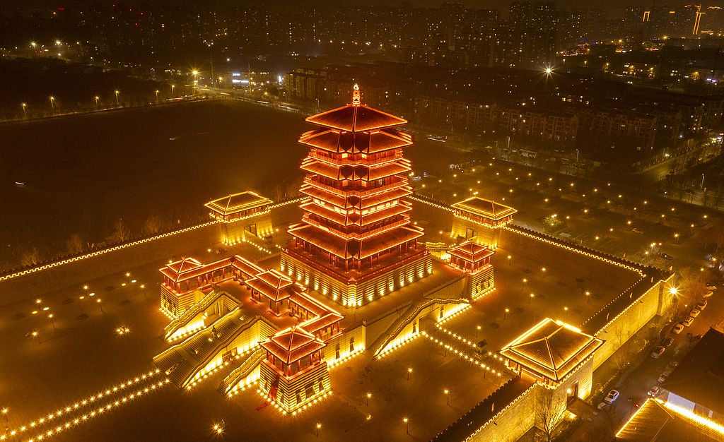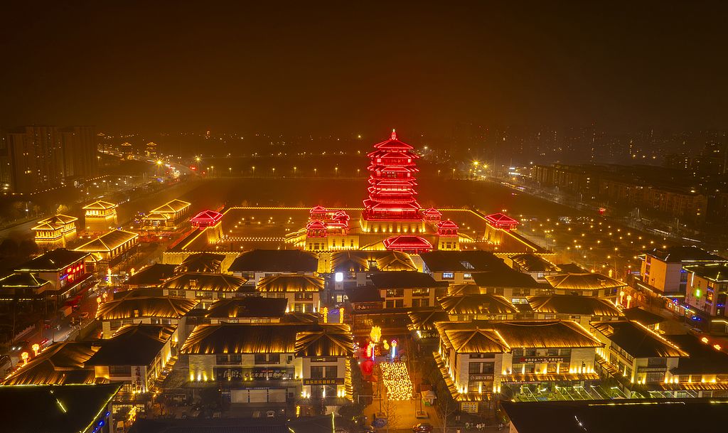江苏泗洪古徐城景区上演灯光大秀 璀璨夜景年味浓浓
