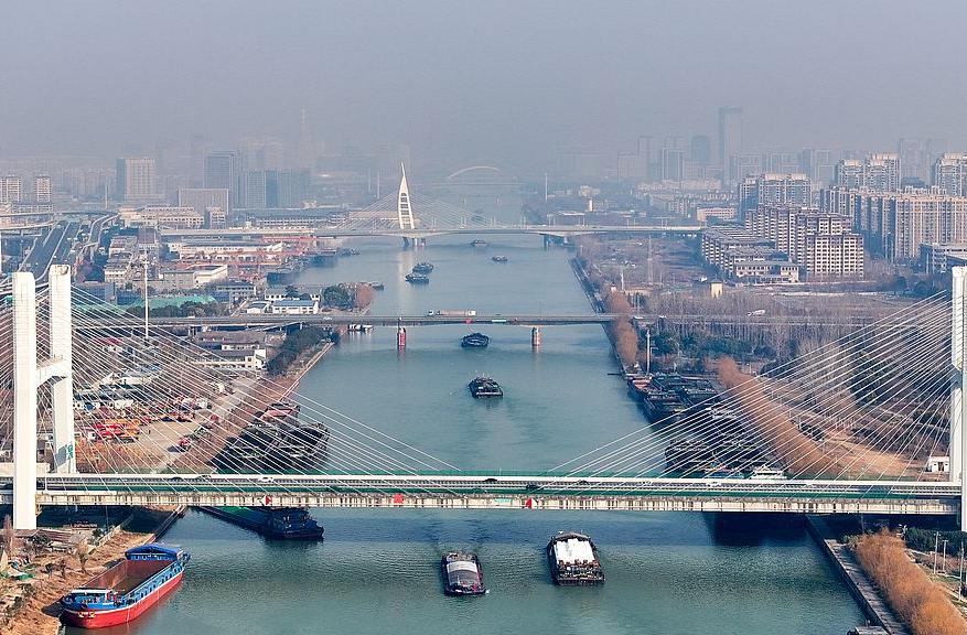 江苏扬州:京杭大运河“水上春运”一派繁忙