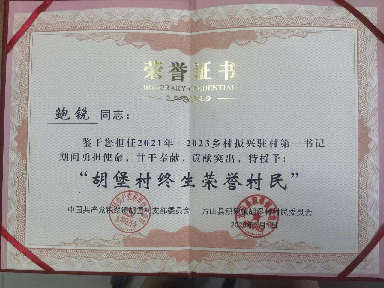 “以前啊,村里的污水到处乱排,气味难闻得很。自打污水改造工程完工后,咱这生活环境可真是变好了太多!” 胡堡村一位村民满是感慨地说道。鲍锐不仅牵头实施了 “胡堡村污水处理工程项目”,还大力推进 “自来水管改造工程” 以及 “村内小巷道路硬化改造” 等一系列改善民生的项目。这些项目如同疏通了村庄内部的 “毛细血管” 一般,让道路更加通畅,供水更加稳定,村居环境愈发整洁,全方位改善了胡堡村的人居生活环境。以 “小切口” 服务 “大民生”,于 “微幸福” 里谋 “大幸福”,鲍锐用行动诠释着新时代中国青年的使命担当。
