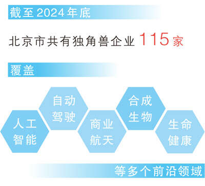 截至2024年底,北京市共有独角兽企业115家,覆盖人工智能、自动驾驶、商业航天、合成生物、生命健康等多个前沿领域。为进一步加大对独角兽企业培育和服务力度,从2020年开始,北京为独角兽企业配备了专职服务管家。