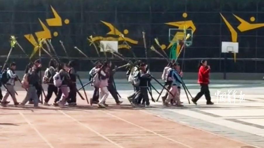 小学生们的期末奖励是甘蔗,扛着比人高的礼物回家倍儿有面