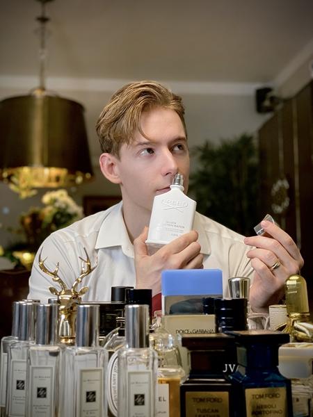 2021年,沃尔什决定创业做自媒体,经过多番调研和思考,他选择了香水这个赛道。“首先,我想做自己喜欢的内容。”沃尔什告诉中青报·中青网记者,他是一个深度香水爱好者。“我小时候,爸爸每天上班之前都会喷一点香水,然后给我一个大大的拥抱。所以这个香气在我心中代表一个很高大的爸爸。”长大后,沃尔什迷上了不同品牌的香水。“去约会或者去旅游,我会选用不同的香水,这个香水就会成为我回忆的一个开关,闻到这个味道就会想到当天的场景。”
