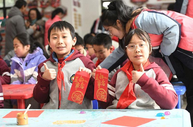 合肥:中小学生体验拓印与红包制作喜迎新春