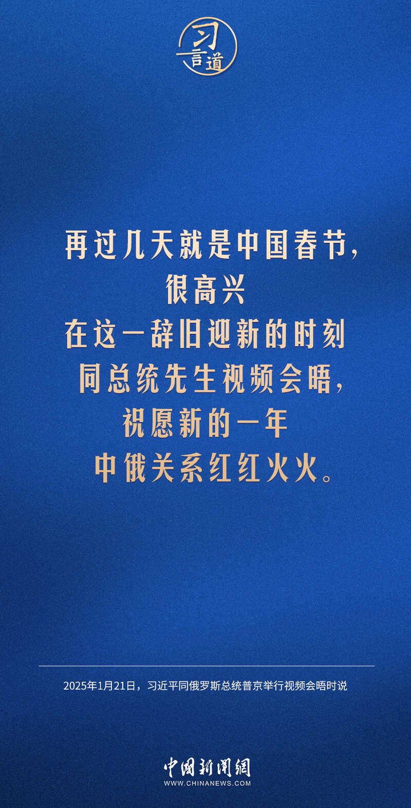 1月21日,国家主席习近平在北京人民大会堂同俄罗斯总统普京举行视频会晤。习近平指出——