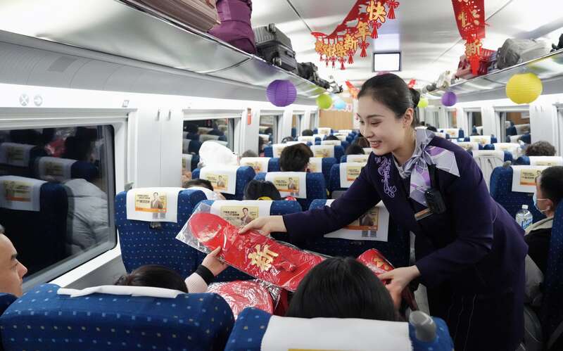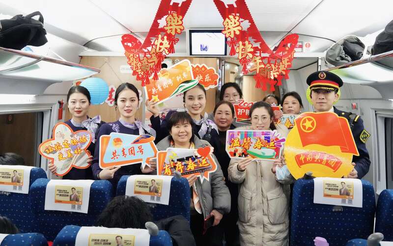 G4413/4次列车始发前,银川客运段组织列车工作人员用灯笼、窗花、拉花装扮了列车,为旅客准备了春联、福字礼包,举办了首发仪式,青年志愿者向旅客发放了安全出行宣传彩页,还邀请他们一起与“共青团号”列车打卡合影。