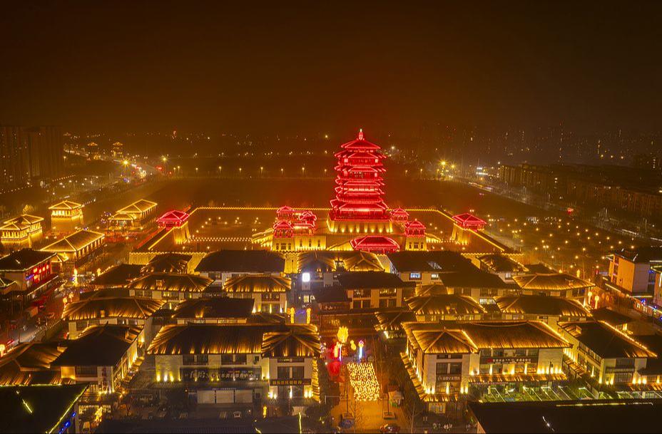 江苏泗洪古徐城景区上演灯光大秀 璀璨夜景年味浓浓