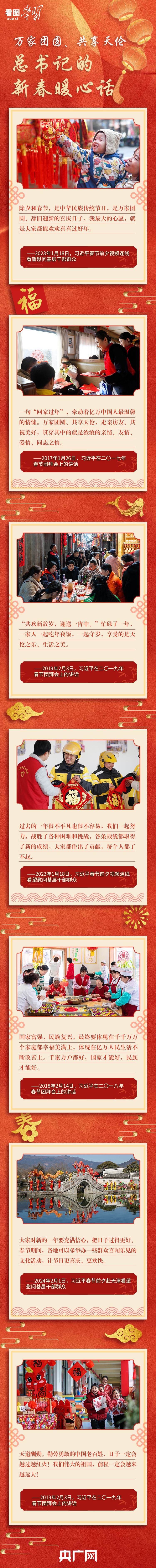 “共欢新故岁,迎送一宵中。”作为中华民族的传统节日,除夕和春节是万家团圆、辞旧迎新最重要的日子。每年春节前夕,习近平总书记都要看望慰问各地基层干部群众,向全国各族人民送上新春祝福。