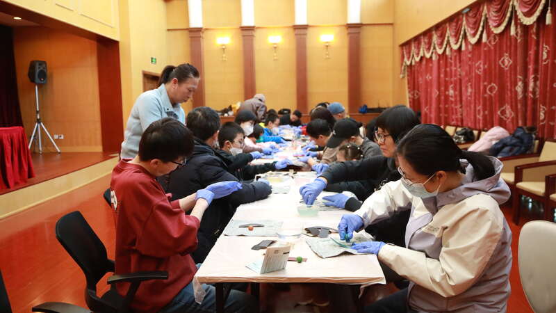 活动期间,天桥剧场里张灯结彩。剪纸、掐丝珐琅、花丝镶嵌首饰和配饰、绳结中国结等非遗手艺,趣味民俗活动、年味十足的互动体验等主题区域,吸引八方来客。