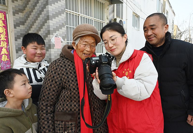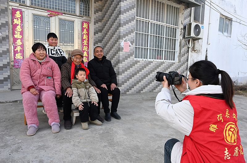 江苏徐州:志愿者为村民免费拍新年“全家福”