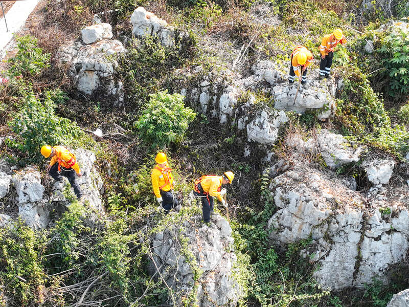 近年来,南宁工务段积极引入各类先进装备仪器,如无人机、测距仪、望远镜等,利用“人工+科技”的手段,通过无人机进行高空巡查,进行影像采集捕捉更多细节,为危岩落石研判提供更准确的数据。陈如明也觉得工作已经轻松了许多,“自从2024年‘爬山虎’突击队成立无人机小组以来,搜山扫石工作从最开始全靠满山跑、肉眼观测、实地测量,到现在已经形成了‘空地’一体化危岩落石隐患排查的作业模式”。