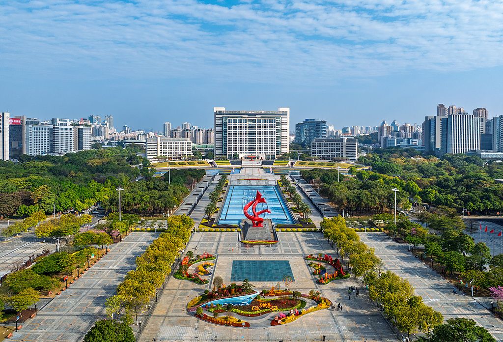 中央“金蛇贺春”主景花坛长度约46米,宽度约35米,打造“灵蛇迎春”“福狮献瑞”“桃花送褔”的主景,描绘出“龙“满载而归”、腾盛世贺新春、欢度佳节百姓安”的新春画卷与“船归城归福年归,莞福兴福湾区福”的新春愿景!东西两侧次花坛以“莞邑纳福、华灯贺岁”为主题,灯笼、对联,贺卡、鞭炮的新春元素以新颖的艺术文创造景方式呈现,营造蛇年旧岁除,八方喜庆来的欢乐气氛。北侧“美满之路”花坛以东莞“红飘带”雕塑为中心点,摆设春节年花,祝福东莞市民蛇年红红火火,美满幸福。