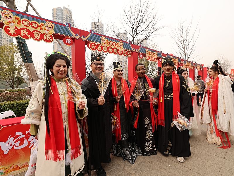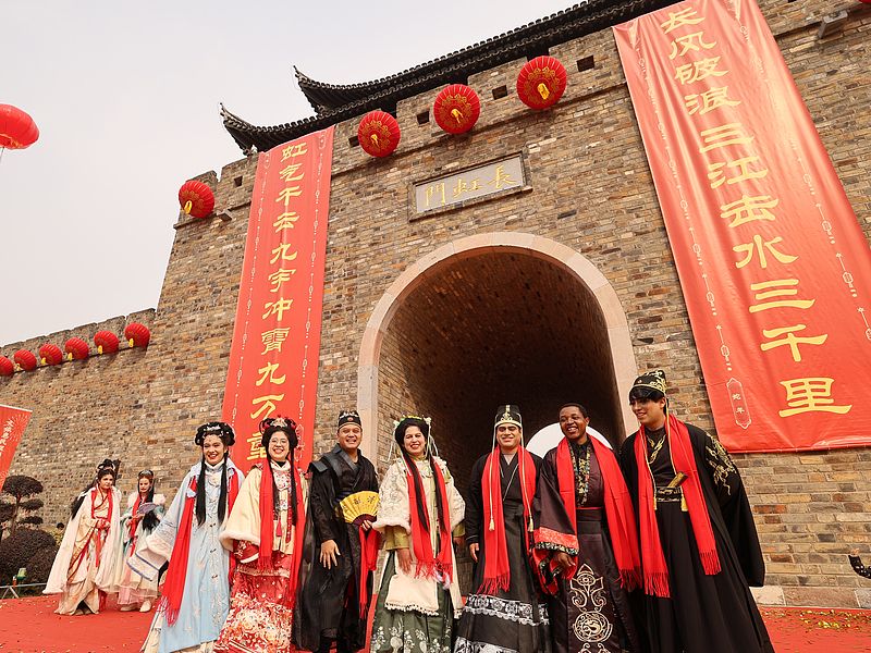 安徽芜湖:外国友人逛古城 身穿汉服体验中华传统文化