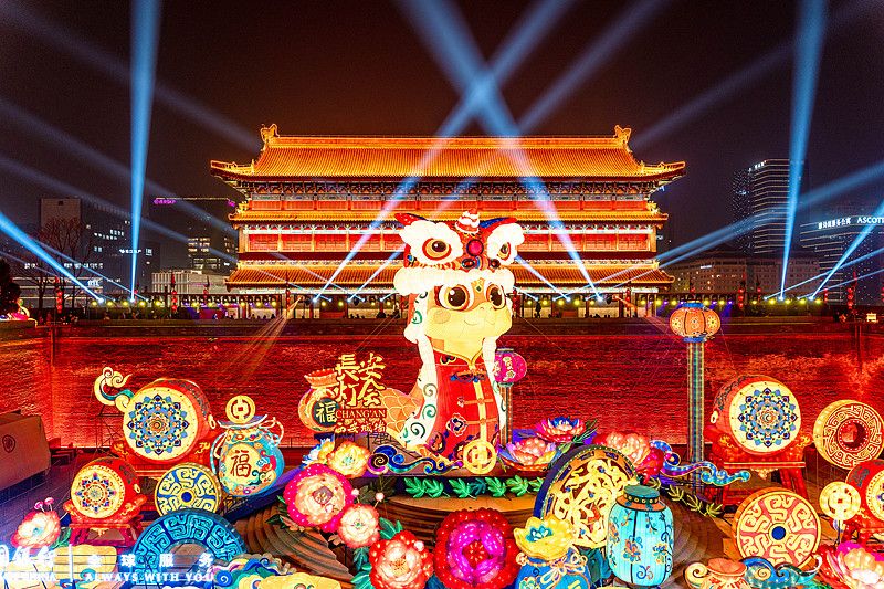 2025年1月22日,西安长安灯会,随着主持人的 “点灯”声起,现场一片欢呼,大明宫国家遗址公园的花灯全部点亮,市民情绪高涨。