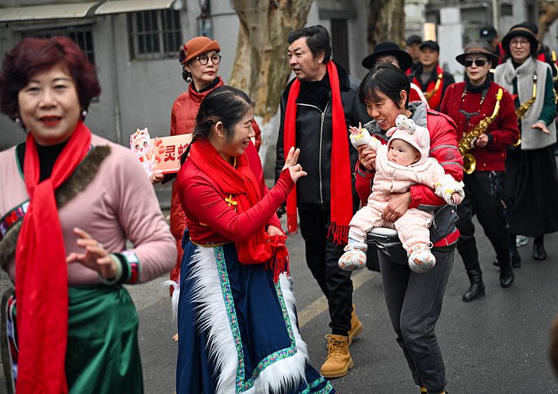 2025年1月24日,杭州上城区南星街道馒头山社区,一场热闹的新春欢乐踩街巡游将“瑞蛇迎春·宋韵凤山”馒友趣年味主题活动推向高潮。