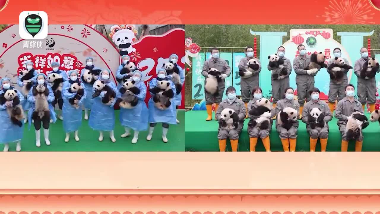 首次集体亮相!25只2024级新生大熊猫萌宝拜年:祝大家“滚滚”向前