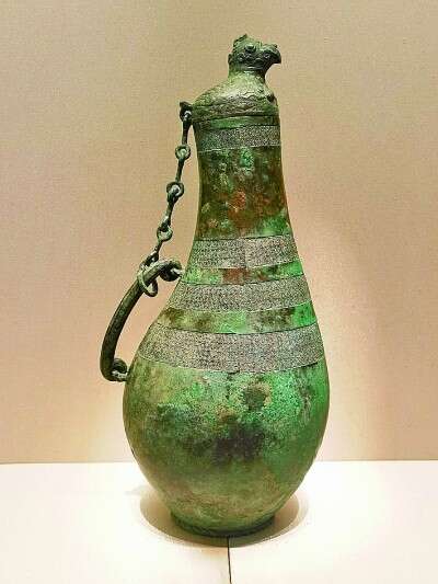 从展厅中青铜器的花纹上我们还可以发现蛇与另一种动物关系密切。细细观察商代桓父己尊可以发现尊腹部兽面纹两侧各装饰有一对脖子修长的小鸟,而鸟冠竟然是蛇形。蛇首向下作双卷云状,蛇身遍布阴线刻画的鳞片。蛇纹与鸟纹的结合反映了古人心目中蛇鸟关系中融合的一面。旁边的战国鸟形盖铜瓠壶则反映了蛇鸟敌对的一面。这只瓠壶的器盖上趴着一只双目圆睁的尖嘴小鸟,喙下左右各饰小蛇一条,双爪也各抓握一条蛇,蛇身曲折回环作奋力挣扎状,这正是自然界中部分鸟类能捕食蛇的生动呈现。而在展厅中央,著名的商代妇好鸮尊身上,蛇与鸟的关系似乎更为复杂。鸮尊双翅部位各装饰有一条盘曲状的蛇,蛇首近桃心形,蛇身装饰有连续的棱形雷纹。巧合的是,这条蛇正盘曲在鸮的翅膀位置,其造型又与羽翅形象近同,这是否在暗示着蛇与鸮之间的某种幻化与结合呢?