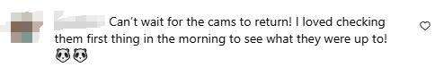 “等不及大熊猫摄像头重新开放了!我每天早上起来第一件事,就想看看它们在做什么!”