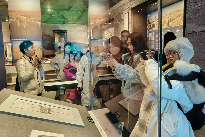 2025年1月26日,乌鲁木齐,孩子和家长在新疆维吾尔自治区博物馆参观。