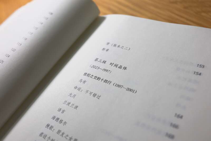 于是,近五年的作品作为第一辑“对现在的回忆”,几个组诗作为第三辑“时间晶体”,其余皆为第二辑“漫长的序章”——从未料到自己的四十五岁会以那种惨烈的方式结束,时代轰然前行。有些东西再也回不去了。