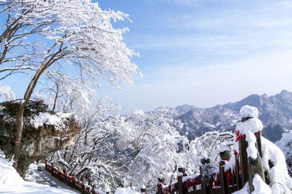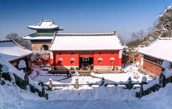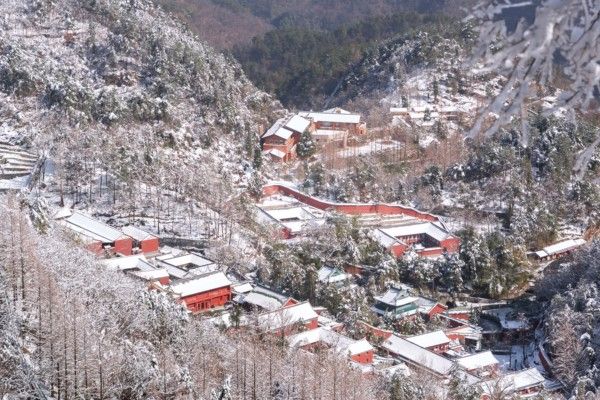 2025年1月26日,湖北十堰,雪后初霁的武当山南岩宫满山白雪皑皑。山峦与雾凇交融在一起,在阳光的照耀中,让人仿佛置身于冰雪童话世界,吸引了众多游客踏雪而来,赏雪拍景。