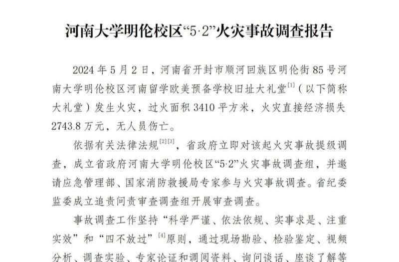 河南大学明伦校区火灾事故调查处理情况公布