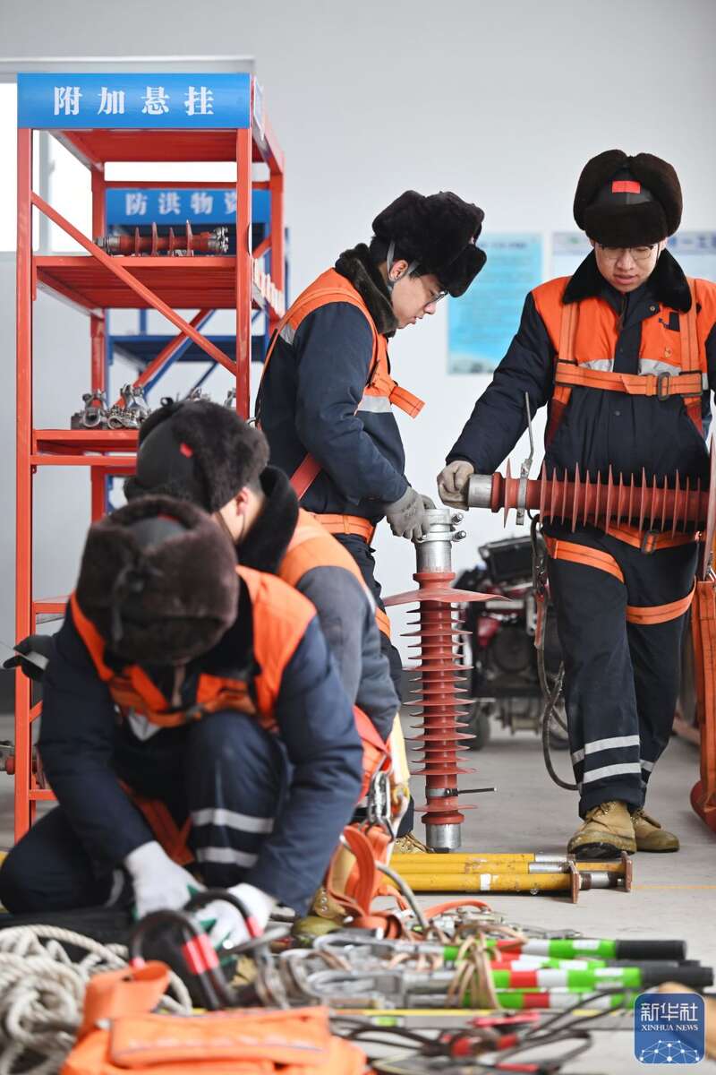 寒潮来袭,中国铁路北京局集团有限公司天津供电段供电维修车间组织应急抢险人员上岗待命,在雪后对铁道上方的接触网运行状态进行巡视,确保春运期间供电设备安全运行。