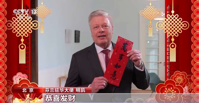 芬兰驻华大使 明凯:恭喜发财!新年快乐!利是逗来(红包拿来)! 蛇年快乐!春节快乐!